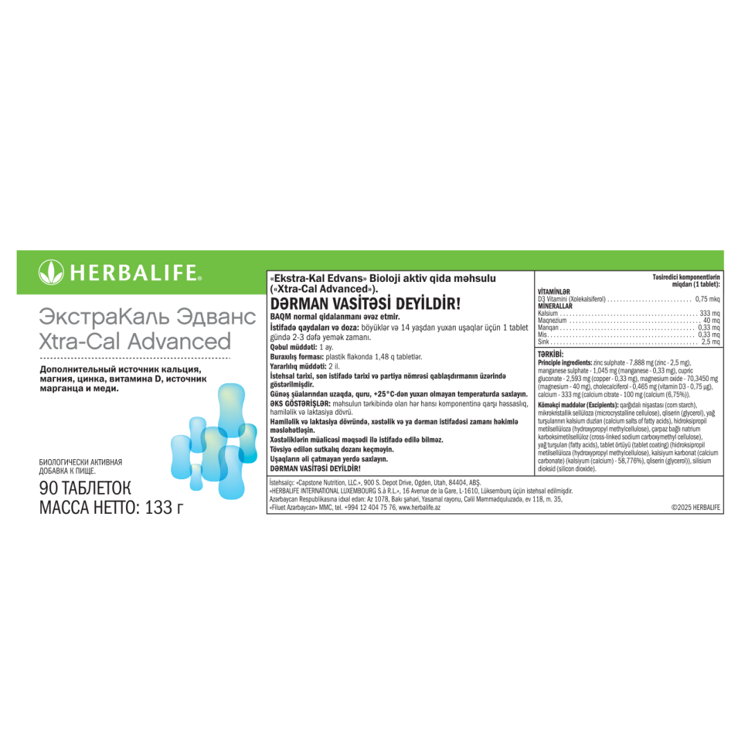 Cəmi 3 həb EkstraKal kalsiumun gündəlik normasının 100%-ni təmin edir*, bu, 3 stəkan süd və ya 4 kasa brokkolinin qəbul edilməsinə uyğundur.